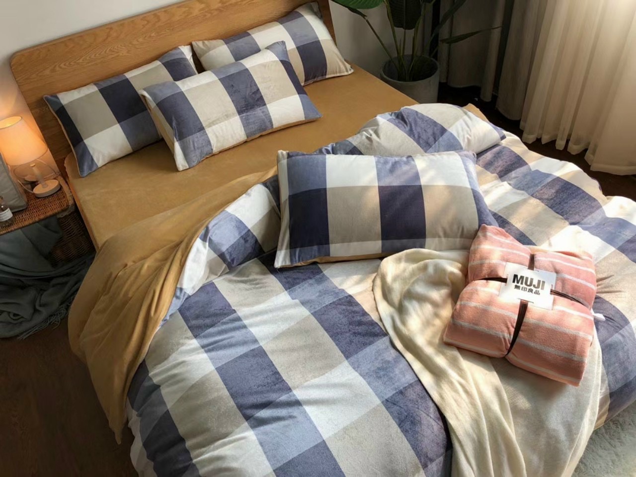 Bộ chăn ga gối nỉ nhung Muji sang trọng nhiều màu sắc