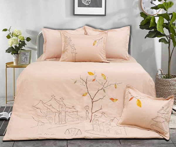 Sử dụng vải nhập khẩu 100% cotton sợi 60 cao cấp, mật độ sợi 300T mang đến sự mềm mại, thoáng mát.