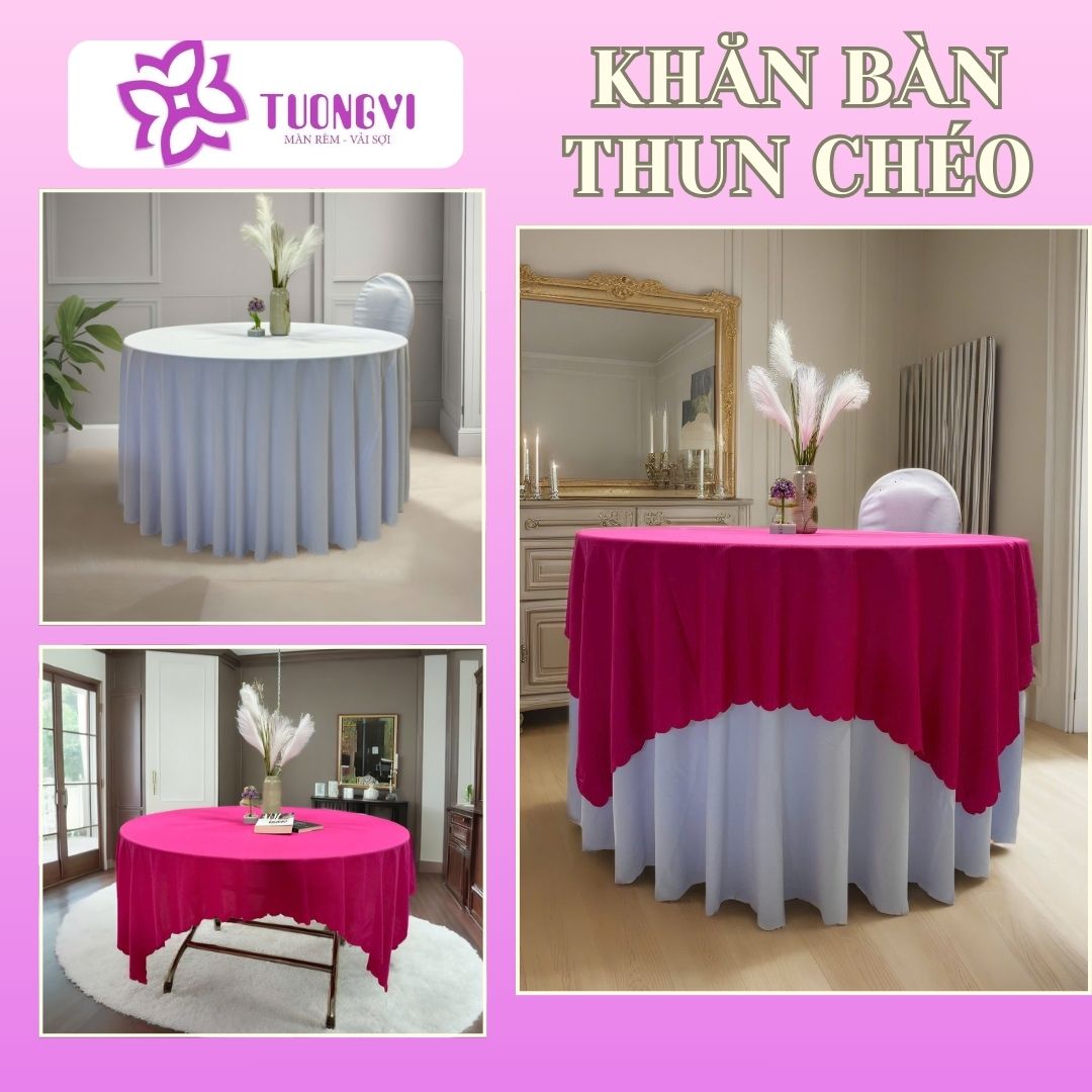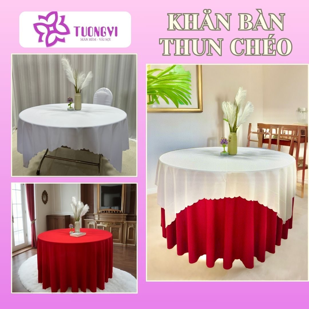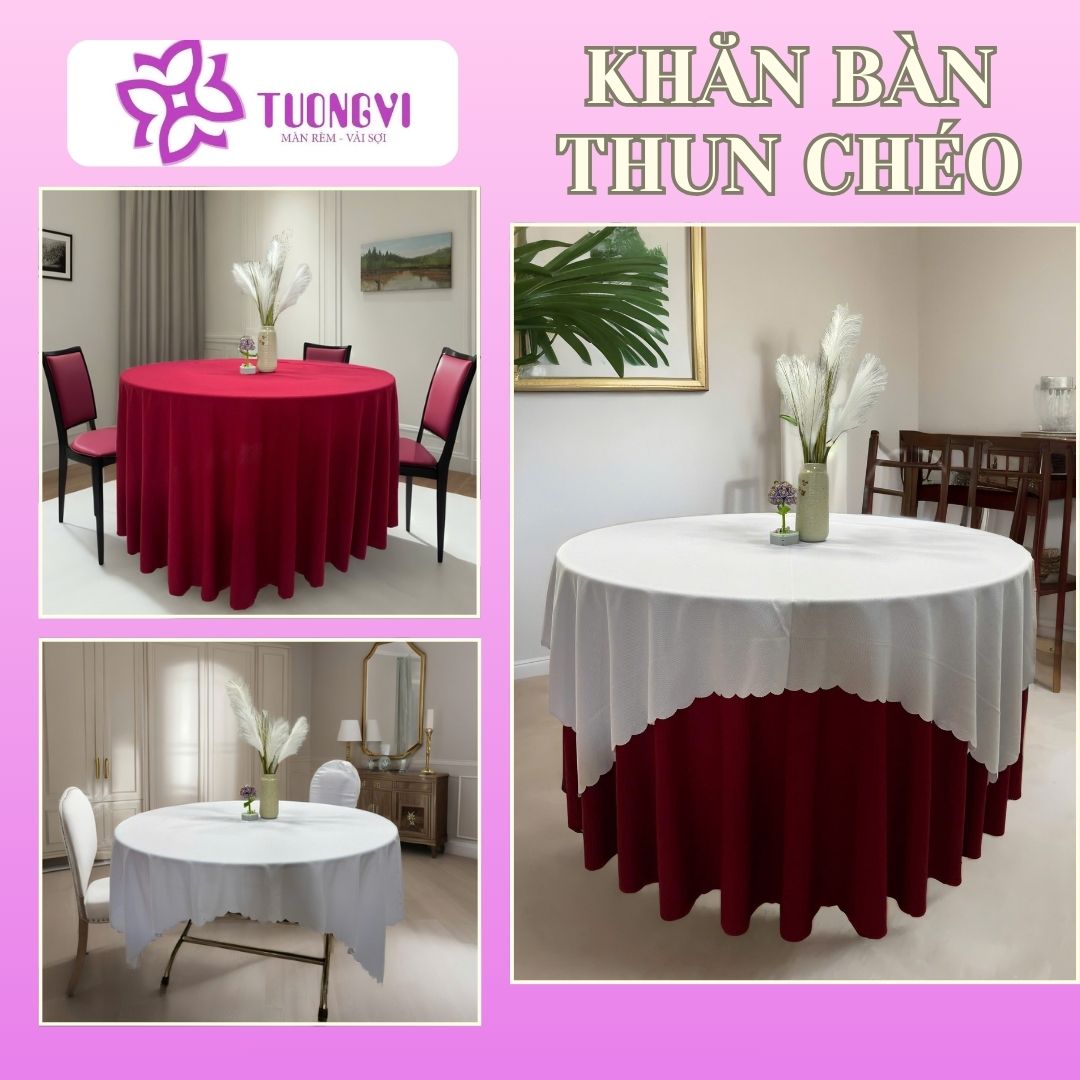 Tạo điểm nhấn sang trọng: Khăn trải bàn tròn, bàn hình chữ nhật với chất liệu thun chéo dày , rũ và bề mặt mịn giúp tạo điểm nhấn cho không gian, biến mọi bữa ăn gia đình hoặc buổi tiệc trở nên trang trọng và ấm cúng hơn.